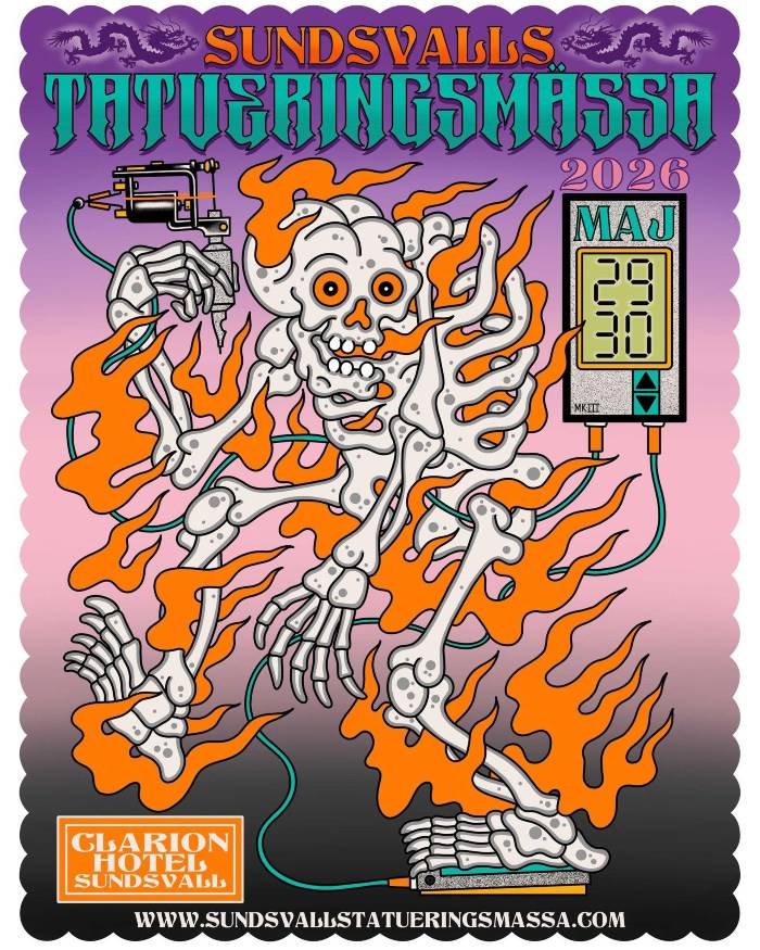 It will take place again in Clarion Hotel Sundsvall 29/5-30/5 2026, and we will welcome around forty tattoo artists, a supplier, a piercer and several local exhibitors.
