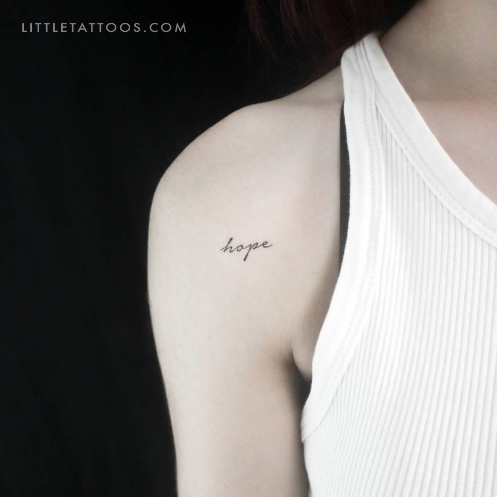 Handwritten font word 'Hope' temporary tattoo located on the shoulder. ► GET IT HERE